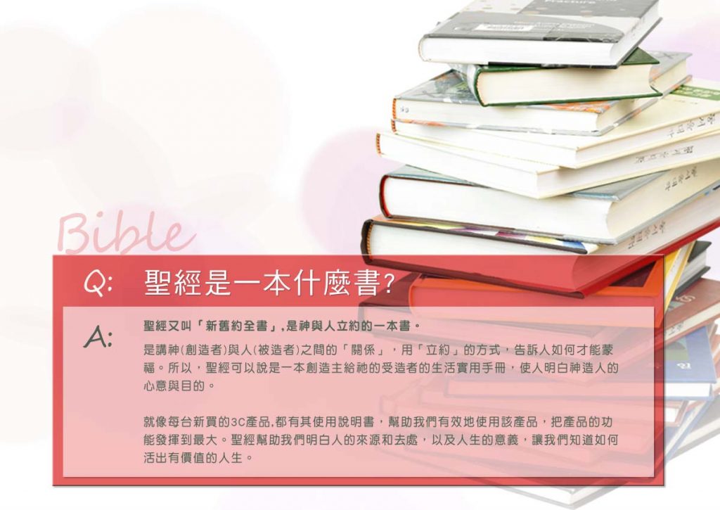 所以,聖經可以說是一本創造主給祂的受造者的生活實用手冊,使人明白神造人的心意與目的。就像每台新買的 3C產品,都有其使用說明書,幫助我們有效地使用該產品,把產品的功能發揮到最大。