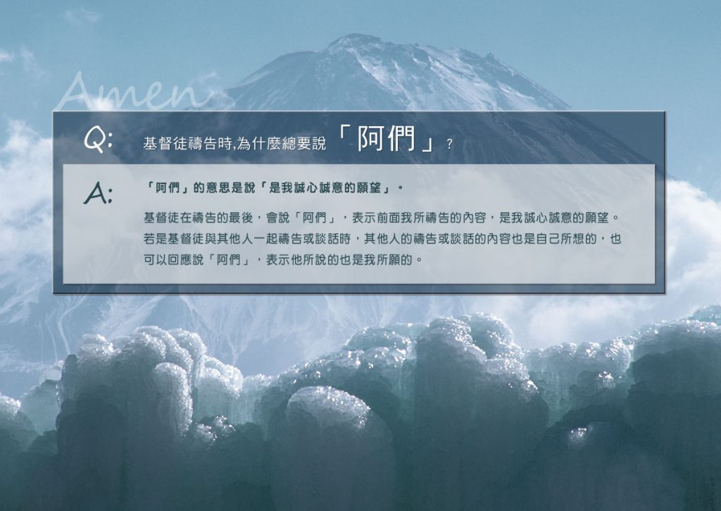 「阿們」的意思是說「是我誠心誠意的願望」。