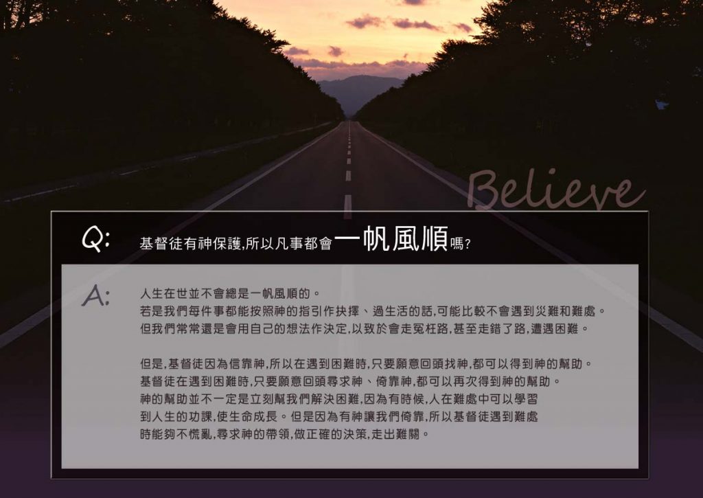 但是因為有神讓我們倚靠,所以基督徒遇到難處時能夠不慌亂,尋求神的帶領,做正確的決策,走出難關。