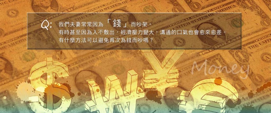 基本上,這並不是誰聽誰、誰贏誰就能解決的問題,夫妻是一體的,兩個吵起來,誰都不會是贏家。家中金錢的規劃,建議夫妻兩人應該在一個和諧的情況下好好聊一聊,做好分配,哪些是家庭必要的開銷、哪些是對方很想要買的(例如衣服、化妝品、3C產品……)、哪些是預計要存下來的……,把收入與支出清楚的規劃出來。