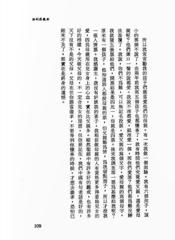 而不少人對子女都比對父母還有耐心和愛心,有人曾開玩笑地說:「父母總是把最好的菜往子女碗裡送,而子女卻把不想吃的菜夾到父母的碗裡。」這真是非常生動的描述。如果你已經有子女,在你對媽媽發脾氣之前,先想一想如果今天犯錯的是你的孩子,你的包容度會不會大一些呢?你也可以回想小時候,你的媽媽又是如何照顧你的呢?如果今天是你老了,你會希望別人這樣對待你嗎?懷著感恩與體諒的心,你就不會對媽媽大吼大叫了。